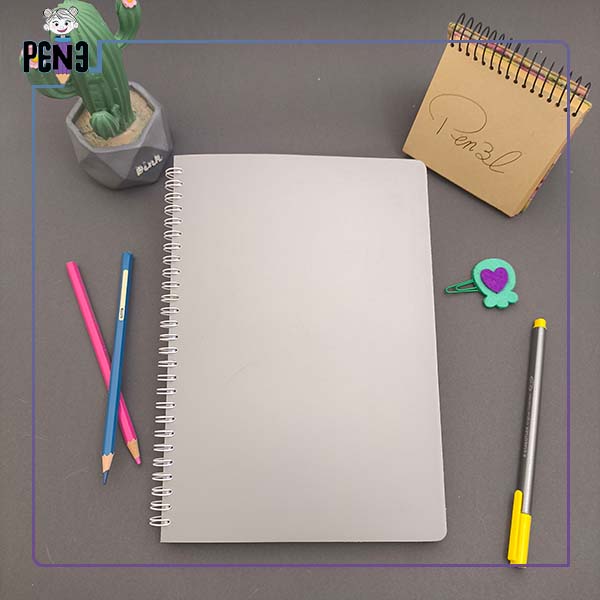 دفتر سیمی ۱۰۰ برگ جلد طلقی طوسی سپند