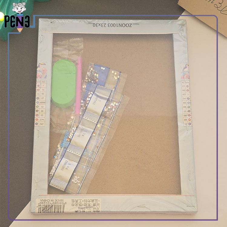 - محتویات داخل بسته بندی: قلم مخصوص, الماس های رنگی کریستالی درخشان، ظرف مرتب کردن الماس ها و چسب دوطرفه
