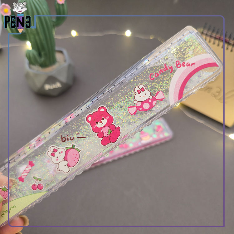 تولیدکننده این خطکش را با طراحی خلاقانه و کیفیت ساخت عالی عرضه کرده است. تولیدکننده در طراحی این محصول، بدنهای شفاف با چاپ باکیفیت و ماندگار بهکار برده و آن را با مایع شفاف و اکلیلهای درخشان پر کرده است. طراحی محصول شامل خرس صورتی، خرگوش، توتفرنگی و آبنباتهای رنگارنگ است که فضایی شاد و کودکپسند ایجاد میکند. برند کوییک سند با طراحی این خطکش ۲۰ سانتیمتری، نیاز روزمره دانشآموزان را بهخوبی تأمین میکند. هرچند این محصول بسیار زیباست، اما در برابر برخورد با اجسام تیز حساس بوده و احتمال آسیب دیدن آن وجود دارد. در صورت کشیده شدن جسم نوکتیز روی آن، ممکن است چاپ پاک شود یا بدنه خطکش شکسته شود. همچنین به دلیل وجود مایع داخلی، استفاده از این خط کش برای کودکان زیر ۳ سال توصیه نمیشود.