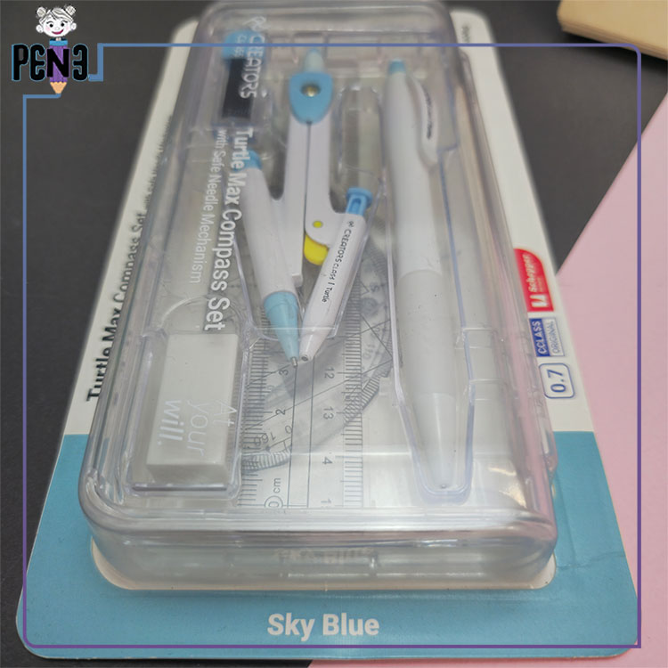 - ویژگی: خط کش، نقاله و گونیا شفاف و با کیفیت، پرگار اتودی با قابلیت تنظیم دقیق و آسان، خودکار آبی روان، سوزن امن