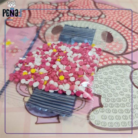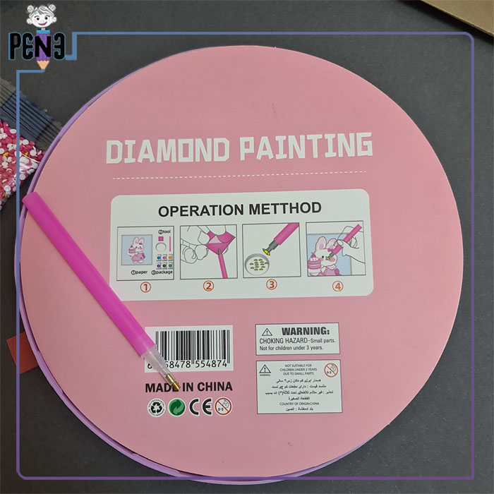 - محتویات داخل بسته بندی: قلم مخصوص, الماس های رنگی و چسب دوطرفه